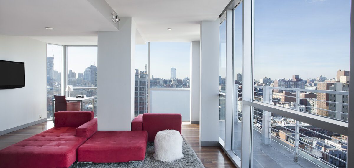 Welcome to Hotel on Rivington, a premier destination among New York City hotels. Located in the center of the lively and historic Lower East Side, Hotel on Rivington is an urban oasis with a sleek modern design, stunning skyline views and spacious accommodations that exceed New York City hotel standards. Our modern rooms and suites feature unique amenities such as balconies, soaking tubs, steam showers and floor-to-ceiling glass walls designed by renowned NYC architects Grzywinski + Pons.